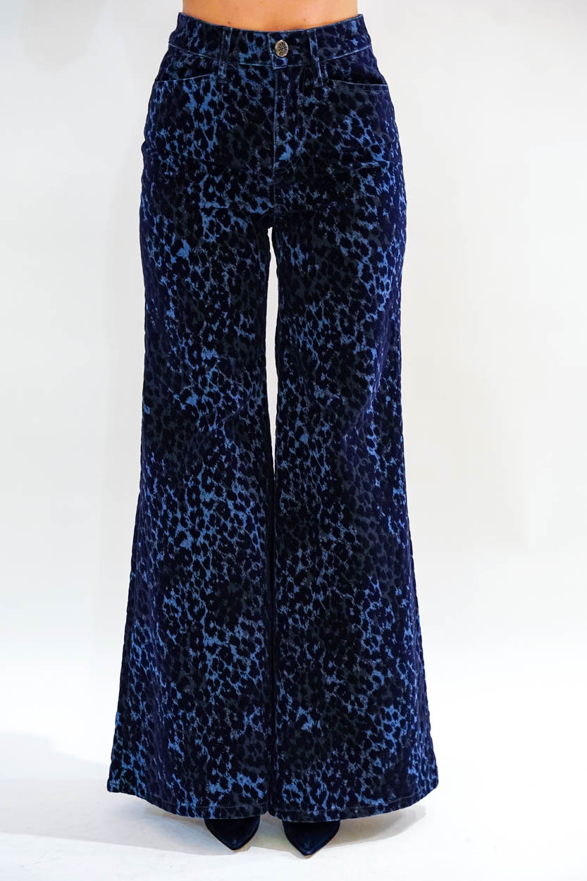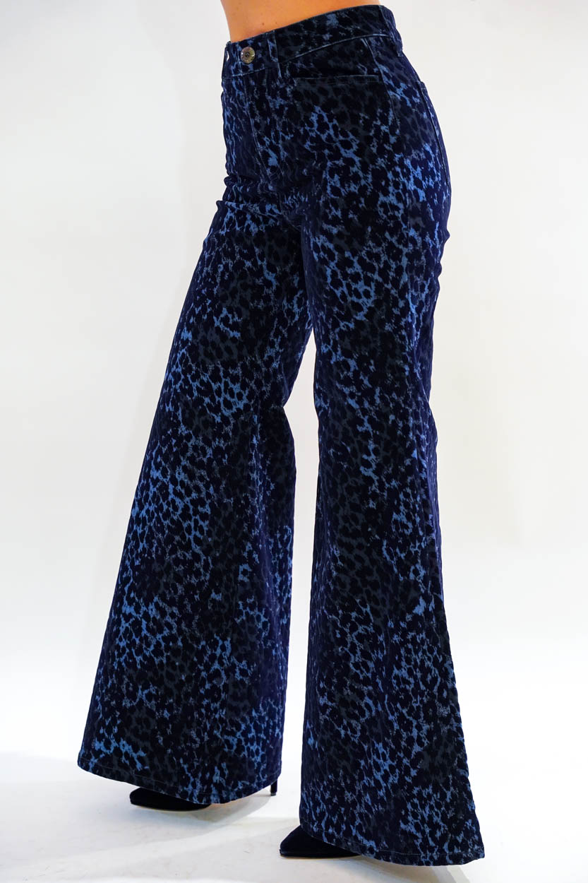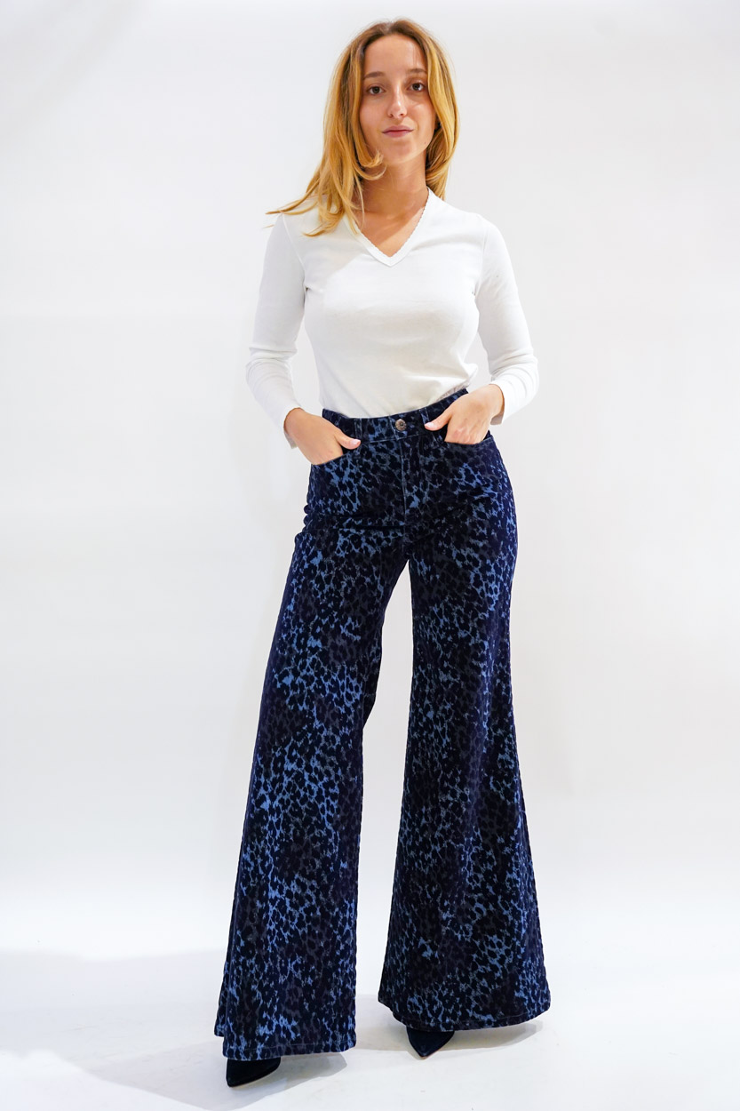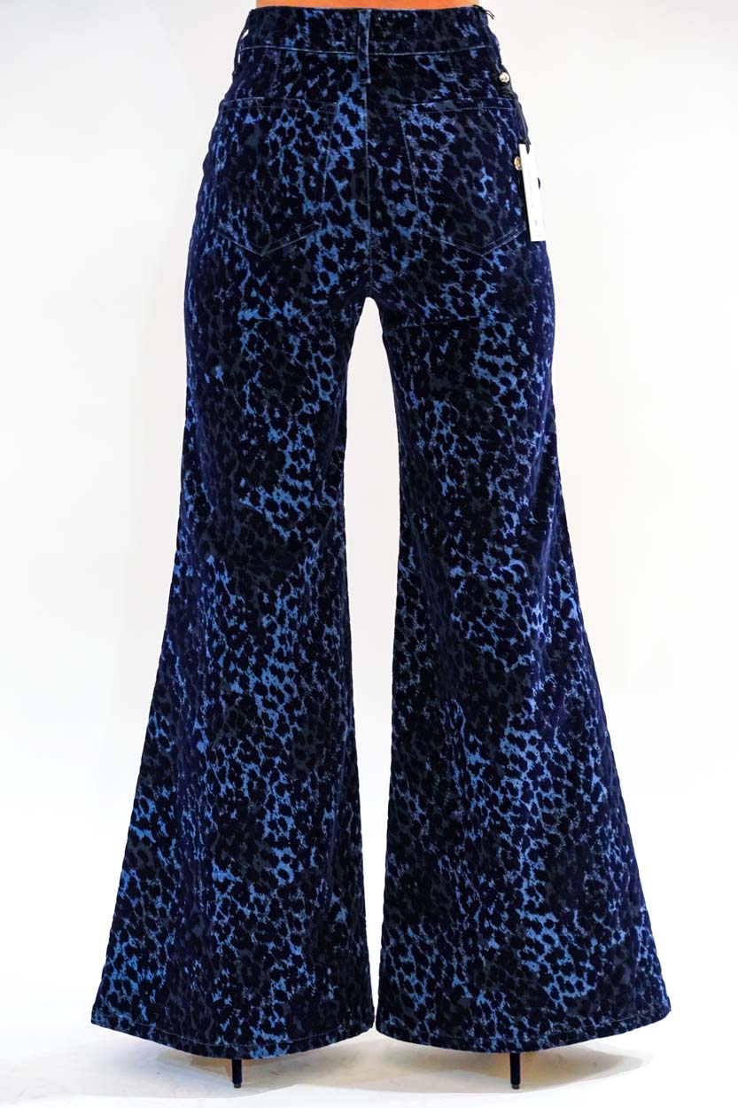 Pantalone fondo largo velluto leopard over blu used